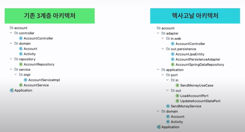 아키텍처 종류 계층형 아키텍처 특징 전통적인 수평적 계층화 장점 단순한 구조 보편적이라 익숙해서 처음 시작할 때 적합하다. 단점 업무 도메인에 대해 아무 것도 말해 주지 않음 소프트웨어가 커지고 복잡해지면 조직화에 도움 안 됨 데이터베이스 주도 설계 유도 클린 아키텍처 특징 의존성 역전을 이용해서 도메인이 중심 장점 단순한 규칙 도메인이 세부 사항에 의존하지 않음 DDD(도메인 주도 설계) 적용이 용이 비즈니스 규칙에 집중하기 쉬움 단점 패키지 구조가 계층형보다 더 복잡함 익숙하지 않아서 처음에 버벅일 수 있음 레퍼런스가 적음 목표 관심사의 분리 핵심 규칙 의존성의 방향은 안쪽, 고수준을 향함 이럴 땐 클린 아키텍처를 쓰지말자... 소규모의 프로젝트 진행 프로젝트 개발자 모두가 클린 아키텍처를 이해하고 ..
