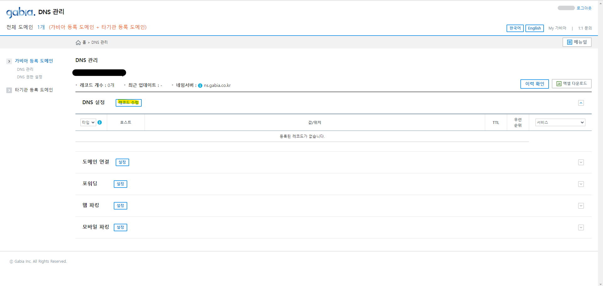 가비아에서 구입한 도메인을 Nginx 서버에 적용하기 가비아에서 구입한 도메인을 Nginx 서버에 적용할거다. 1. '레코드 수정'을 클릭한다. 2. '레코드 추가'를 클릭한 후 '호스트', '값/위치'를 입력한다. 값/위치는 EC2의 퍼플릭 IPv4 주소다. 호스트가 없으면 @를 입력한다. 이 경우 구입한 도메인이 test.shop이라면, http://test.shop http://www.test.shop로 접속하도록 만들고 싶으면 호스트에 www를 적어주면 된다. 3. nginx 설정을 변경한다. sudo vim /etc/nginx/sites-enabled/default i를 눌러서 insert 모드로 변경 후 servername 부분에 구입한 도메인명을 입력한다. 내 도메인은 비밀이다. 🐒🤫 저장할 때는 Esc 키를 누른 후 :wq를 입력하면, 저장과.. DevOps/AWS 2023.12.04