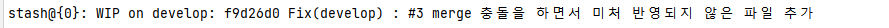 🟩 상황 Please commit your changes or stash them before you switch branches. Aborting 브랜치를 전환하기 전에 변경 사항을 커밋 또는 stash 하라고 한다. 🌿 해결 git stash working directory와 index의 현재 상태를 기록하지만, 새로 작성된 working directory로 돌아가고 싶을 때 사용 로컬 변경 사항을 저장하고 HEAD 커밋과 매치되도록 working directory를 되돌린다. 최근에 생성된 stash는 refs/stash에 저장된다. 오래된 stash들은 reflog에서 찾을 수 있다. 🤗 알면 좋은 것 git stash list stash된 목록을 볼 수 있다. stash@{0}이 가장 최근, s..